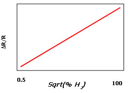 Одним из таких проявлений водорода, растворенного в сплаве Pd-Ni, является увеличение сопротивления сплава. Избыточное по сравнению с чистым металлом сопротивление пропорционально концентрации растворенного водорода и, в соответствии с законом Сивертса, квадратному корню концентрации водорода в газовой фазе. Измерение сопротивления сплава Pd-NI, помещенного в анализируемую газовую среду, дает возможность определять в ней концентрацию водорода в диапазоне от 0,5% до 100%. При уменьшении концентрации растворенного водорода чувствительность измерения сопротивления становится недостаточной. В этом случае измеряется емкость. Растворенный водород находится в металле в состоянии, близком к H+, и плотность зарядов пропорциональна его концентрации. Тем самым, измерение емкости можно связать с концентрацией водорода в газе в диапазоне от единиц ppm до 0,5 %. Оба принципа измерения объединены в анализаторах HY-OPTIMA в одном компактном устройстве