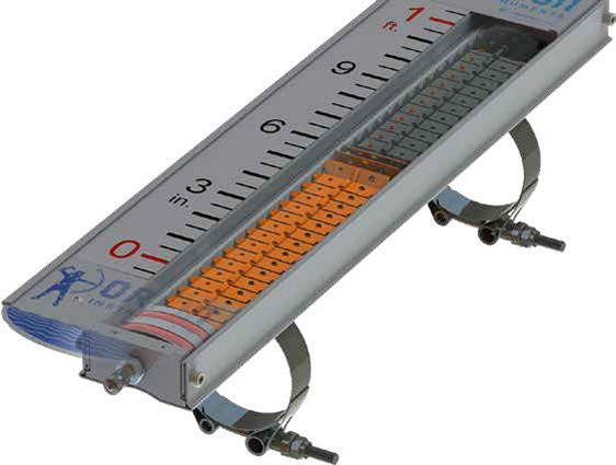 - Индикатор флажкового или челночного типа со шкалой из нержавеющей стали для измерения уровня в процентах или измерения высоты