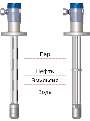 - Уникальный многофазный уровнемер питается напряжением 24 В постоянного тока и позволяет измерить общий уровень жидкости, уровни эмульсионного слоя, воды и отложений.