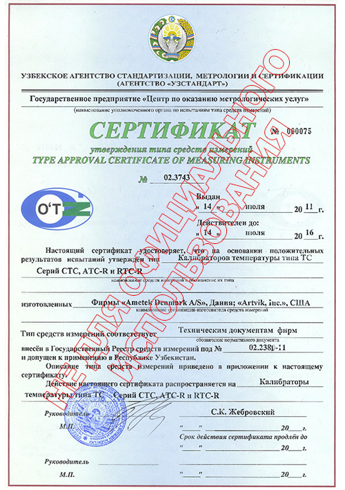 По указанной выше причине при закупке термометра STS в качестве запчасти (взамен вышедшего из строя, например) на него выдается российский Сертификат калибровки с протоколом испытаний, данные из которого в дальнейшем должны заноситься в память соответствующего калибратора или измерителя DTI-1000. После этого и калибратор, и измеритель уже могут работать с новым датчиком и могут использоваться для каких-то внутренних нужд предприятия.